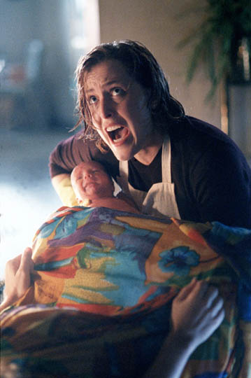 Suddenly, Angela screams that her water has broken. Scully finds herself delivering a baby, which seems to come very quickly. Her bedside manner is less than soothing.