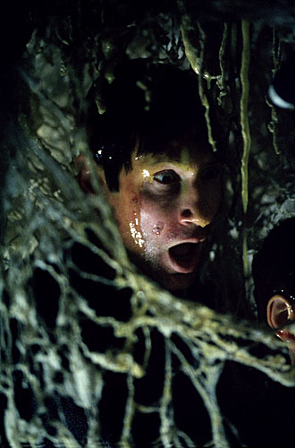 "To make it complacent, to keep it still while it devours it. What if we're still underground?" Mulder is suddenly in pain, holding his face as Scully continues. "What if we're moving deeper into the cave, or being moved? Mulder, what if we're being digested? Right now?"